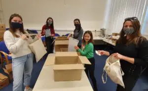 The students, with a little help from a local schoolgirl who gave up her afternoon to volunteer, spent a busy afternoon putting together almost 200 eco bags filled with sweets, arts and crafts, bath bombs and more. The students also included a letter to each child, signed by them all.
