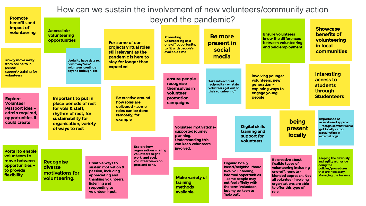 - How can we sustain the involvement of new volunteers/community action beyond the pandemic?