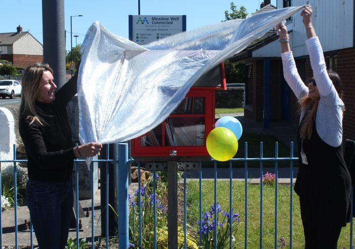 The second of our SAINT project’s Little Free Libraries is now in place outside Meadow Well Connected, in the Meadow Well Estate North Shields. The library has been lovingly constructed by volunteers from VODA’s SAINT project and from Meadow Well Connected. The volunteers have also learnt a range of carpentry and contruction skills in the planning and building of the library.