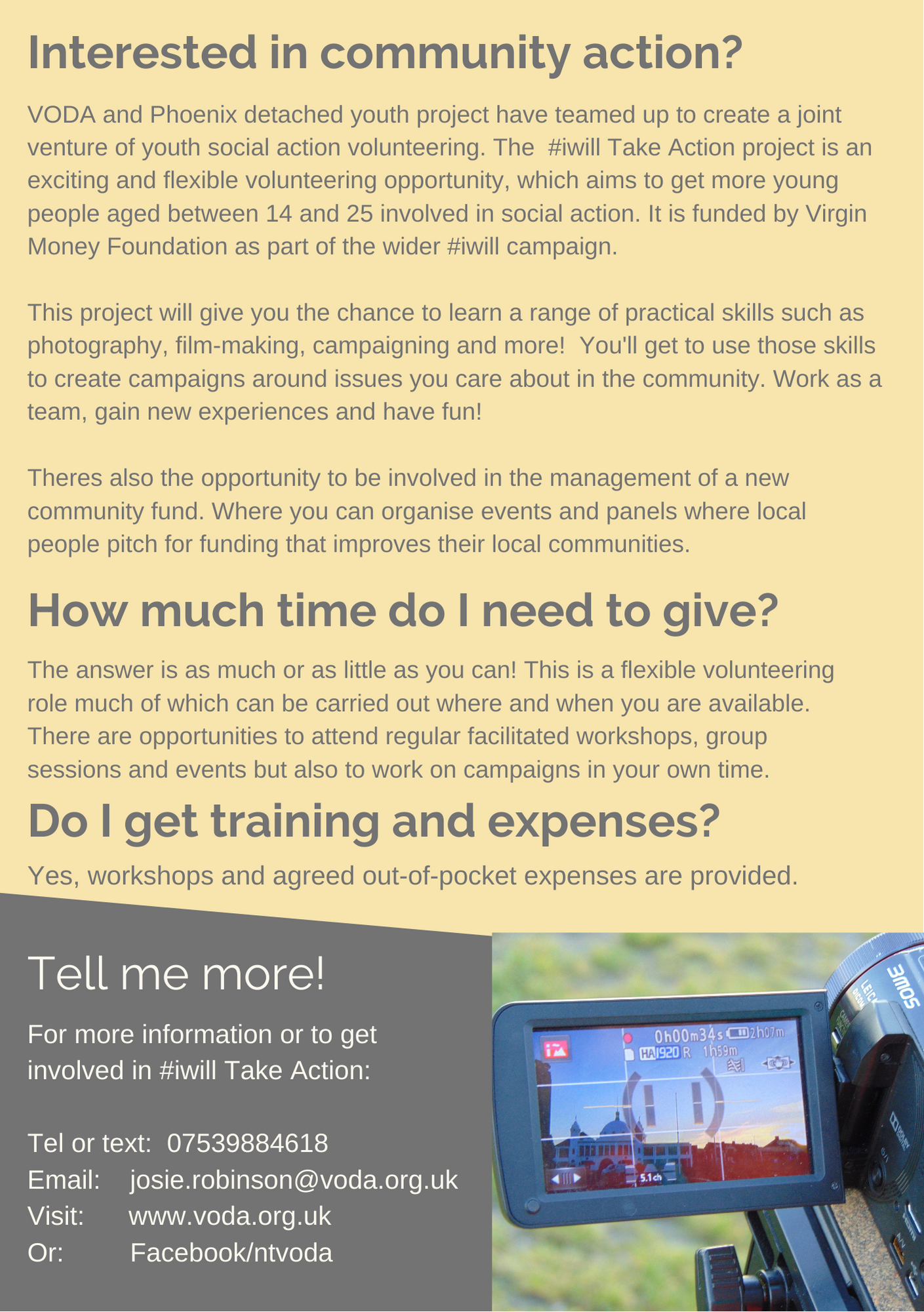 Support will be provided by staff from both VODA and Phoenix Detached Youth projects to help bring projects to life.