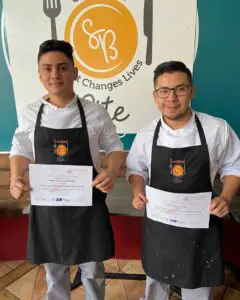 Their Chef Trainer, Jenny, reports that they have been an absolute pleasure to work with from Day 1. Every day they have turned up on time, in clean and pressed chef whites, and given 100%. She knew that their interest and enthusiasm was genuine when after their first week of training they sent her a video of them making ‘mashed potatoes’ at home. It was new to them and the only thing they had cooked that week that they could afford to make themselves. Since then they have developed week on week, and in their last week of training turned teacher and showed her how to make Tres Leches ‘3 milk cake’ which was absolutely delicious.